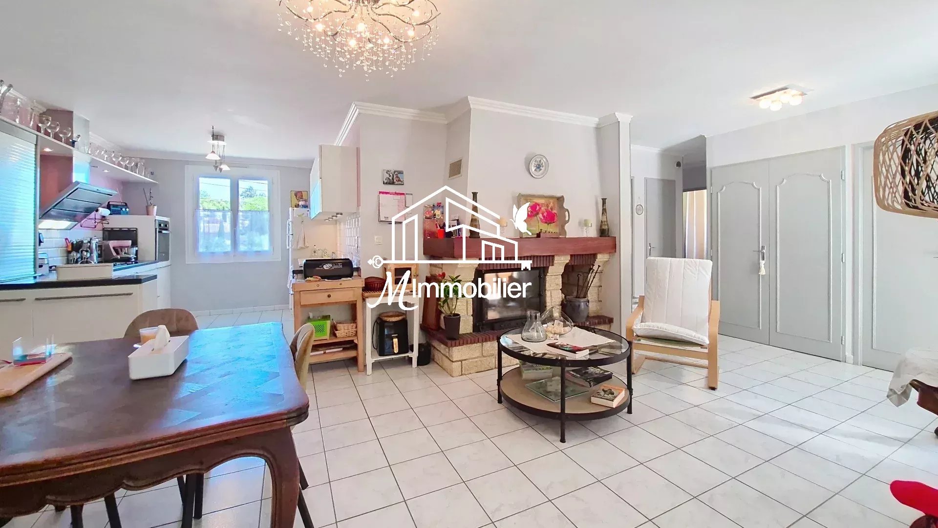L'espace chaleureux avec cheminée promet de merveilleux moments lecture détente, a proximité de la cuisine, tandis que la climatisation dans le salon vous assure un confort appréciable lors des chaudes journées d’été.